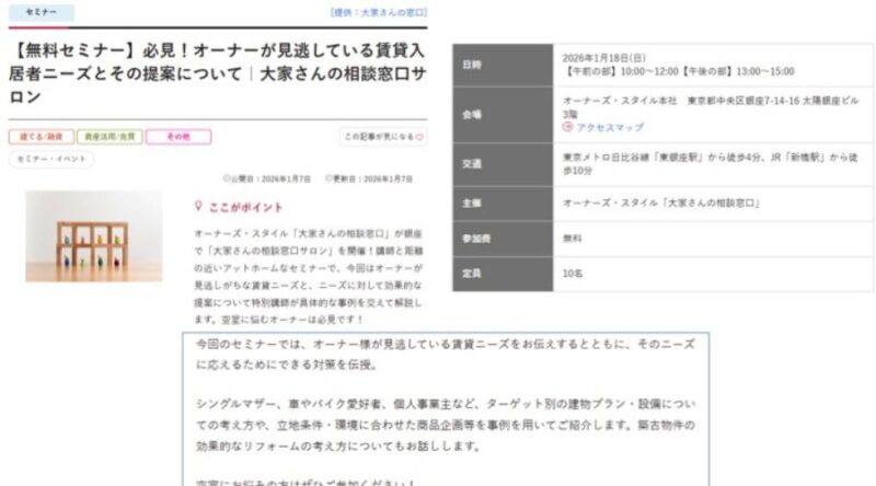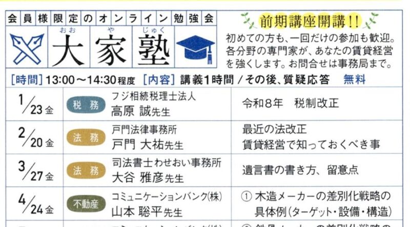 日本地主家主協会大家塾(セミナー)2026年前期