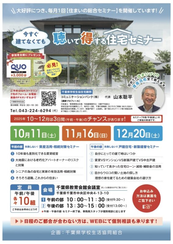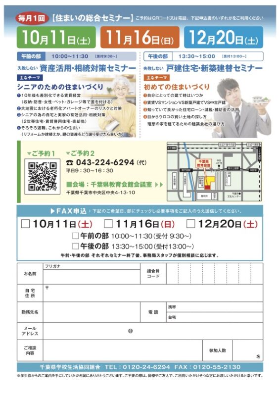 千葉県学校生協・セミナー相談会10月11日・11月16日・12月20日開催