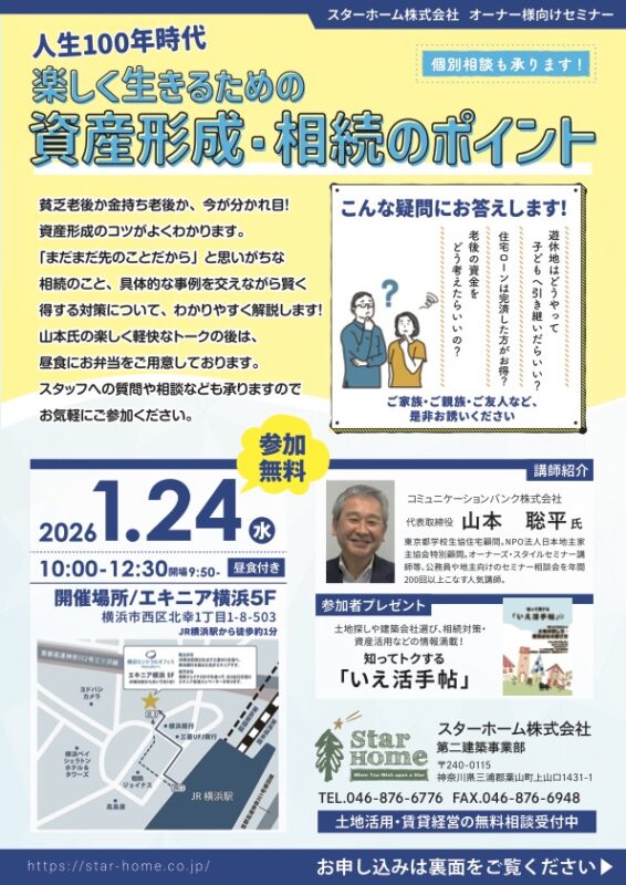 コミュニケーションバンク山本聡平は、スターホーム株式会社のオーナー様向けセミナー講師を担当します。