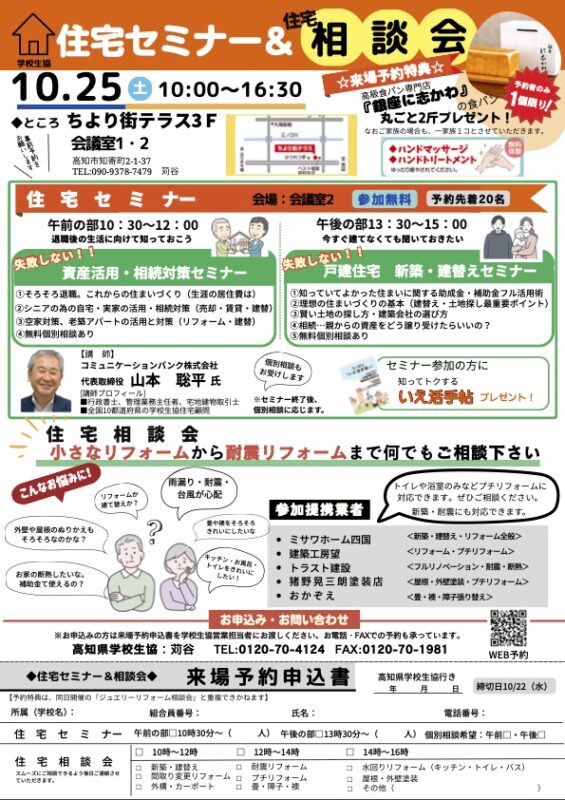 高知県学校生協「住宅セミナー・相談会」講師をコミュニケーションバンク山本聡平が担当します。