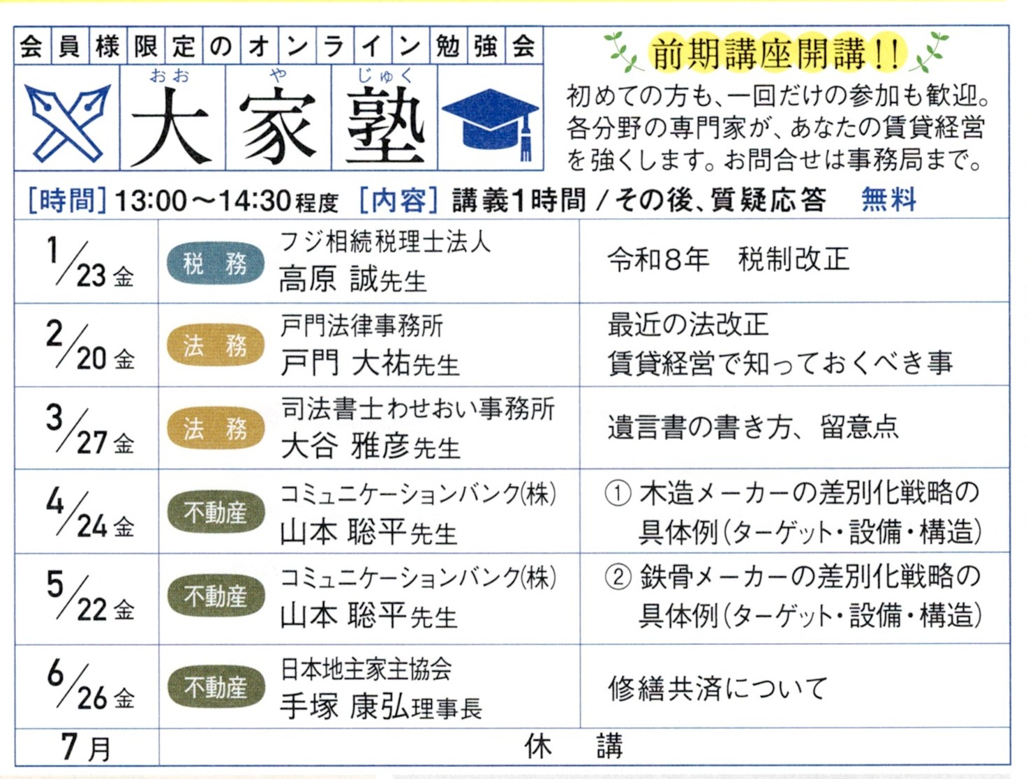 2026年前期「大家塾」