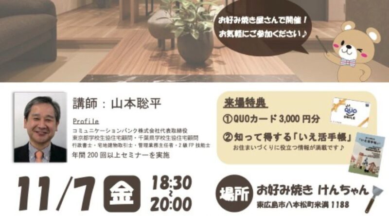 トヨタホーム・ダイハツ「知って得する住まいづくりセミナー」講師をコミュニケーションバンク山本が担当します。